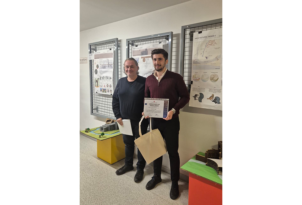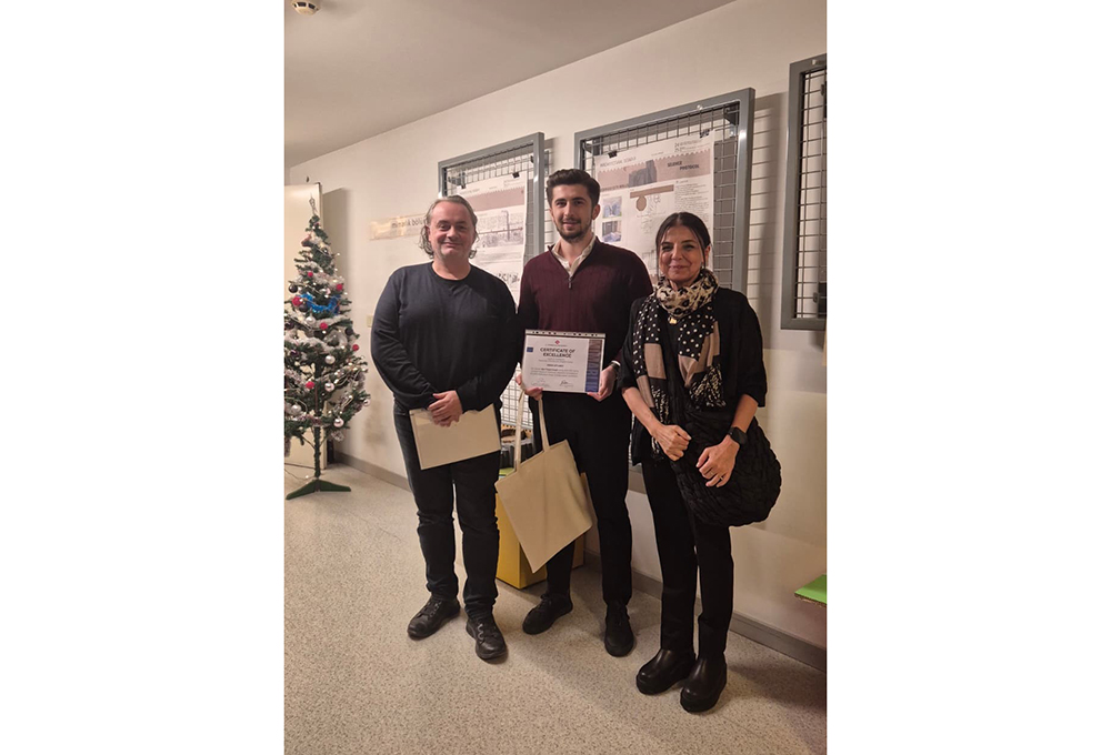 "Graduation Project" ödülünü kazanan Mimarlık Bölümü mezunlarımızdan Abdulrahman Altayeb'in ödülü, yüksek lisans eğitimini Politecnico di Milano’da sürdürmesi sebebiyle Prof. Dr. Neslihan Dostoğlu tarafından kabul edildi.