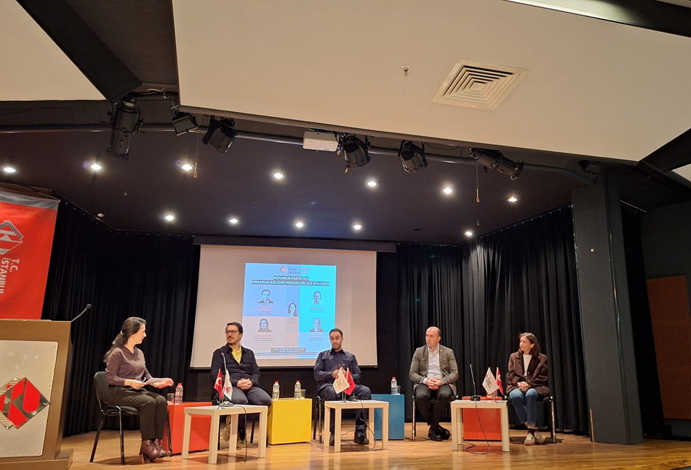 İstanbul Kültür Üniversitesi Mimarlık Bölümü etkinlikleri kapsamında, 13 Nisan 2026 Pazartesi günü saat 10.30’da Bakırköy yerleşkesi Ataköy binasındaki Önder Öztunalı Konferans Salonu’nda "Mimarlık Fakültesi Mimarlık Bölümü Mezunları ile Buluşma" başlıklı söyleşi düzenlendi. Öğr. Gör. Şeyda Şen’in moderatörlüğünde gerçekleştirilen etkinlikte, mezunlarımızdan Orkan Zeynel Güzelci, Baran Taşçı, Gamze Çiçekoğlu ve Şafak Çelik konuşmacı olarak yer aldı.